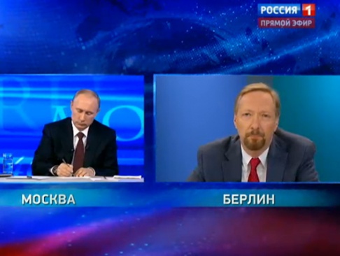 Вопрос из Берлина звучал так: "На наших глазах происходит не только переосмысление мира, но и переосмысление взглядов. От Венгрии до Франции люди избирают политиков, которые, не оглядываясь на Брюссель, отстаивают интересы своих народов. Возможен ли диалог России с Европой и не помешают ли ему США?"