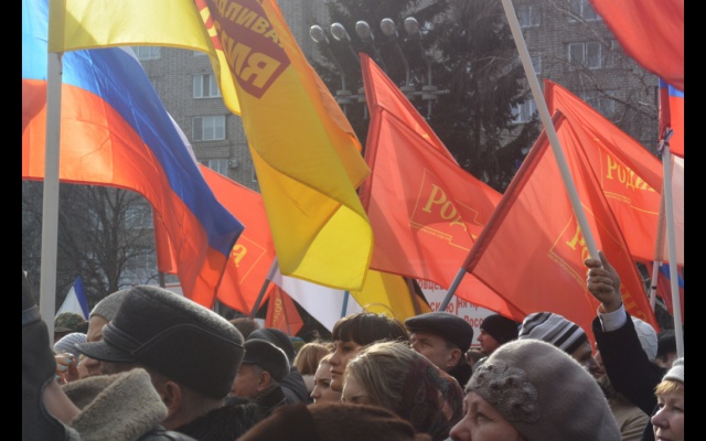 13 марта соратники Красноярских региональных отделений партии "РОДИНА" и Добровольческого движения особого назначения (ДОН) в поддержку армии, флота и оборонно-промышленного комплекса приняли участие в митинге в поддержку действий российских властей, направленных на урегулирование кризиса на Украине.