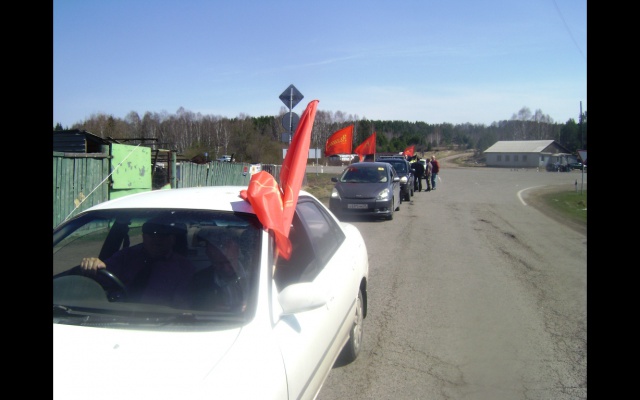 9 мая красноярские родинцы провели партийный автопробег по маршруту "Красноярск-Кедровый".