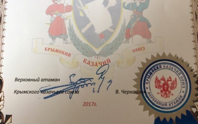 Руководитель регионального отделения партии "РОДИНА" в Республике Крым Константин Кнырик получил благодарность от верховного атамана за материальную помощь при проведении детских патриотических игр "Казачьи забавы", посвященных 72-й годовщине победы в Великой Отечественной войне.