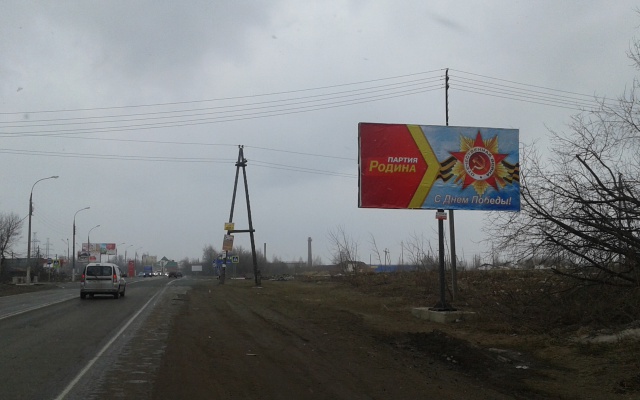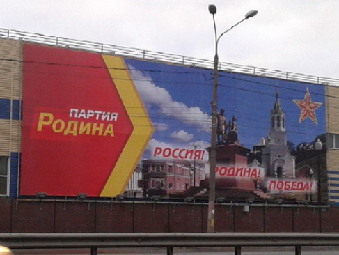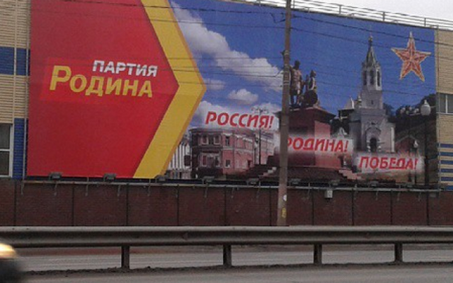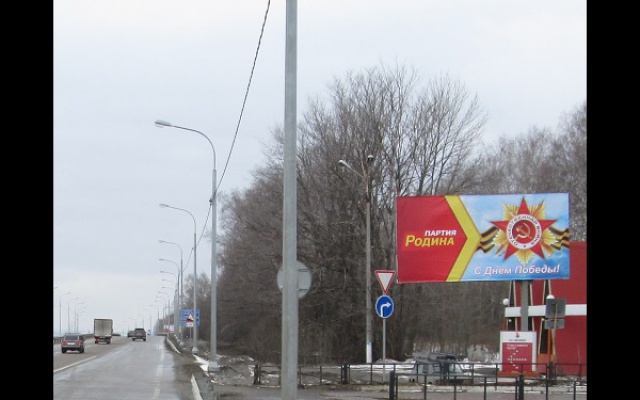 Региональное отделение партии "РОДИНА" разместило поздравительные баннеры на придорожных щитах, расположенных вдоль крупных автомагистралей Нижнего Новгорода.