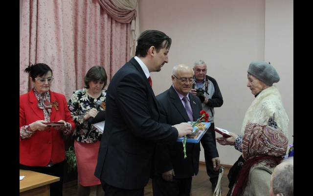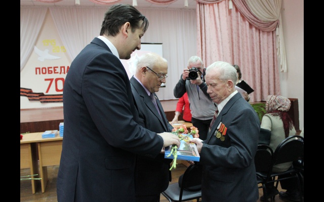 Глава города Дзержинска Валерий Чумазин и депутат Городской думы и Председатель Совета местного отделения партии "РОДИНА" Олег Чесноков вручили юбилейные медали ветеранам Великой Отечественной войны, которые приняли участие в празднике, прошедшем 1 апреля в школе №3.