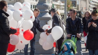 9 мая свердловские партийцы поздравили жителей Свердловской области с Днём Победы. На центральных улицах города перед Парадом Победы они раздавали белые и красные воздушные шары и георгиевские ленты.